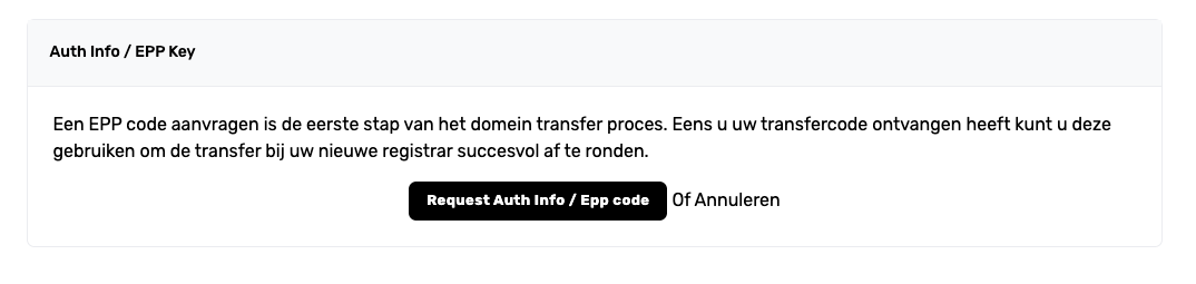 Het scherm zal zich dan vernieuwen en de EPP code tonen die u kunt gebruiken om een domeinnaam te verhuizen.
